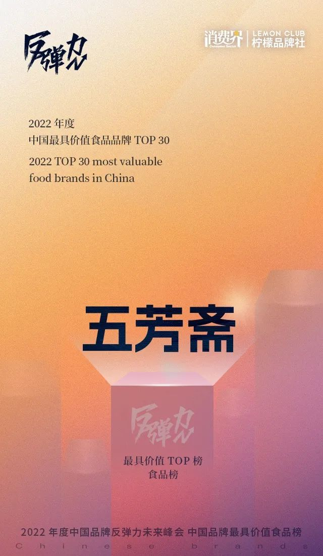 此次,五芳齋成功入選2022年度中國最具價(jià)值食品品牌TOP榜單!這份榮譽(yù)的背后,也表明了行業(yè)對五芳齋產(chǎn)品力、品牌力、增長力的極大認(rèn)可。